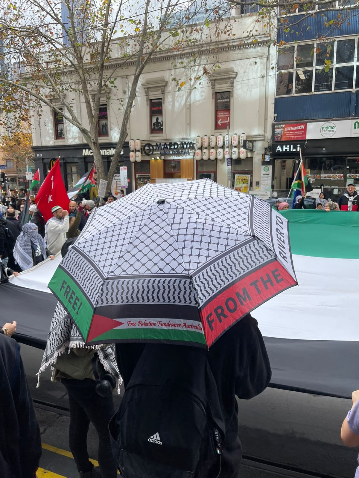 Stay protected from the elements while making a powerful statement with our Palestine-themed umbrella. Featuring the iconic phrase "From the River to the Sea," this umbrella symbolizes unity, resilience, and hope. Built for durability and style, it offers: